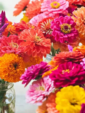 We grow a rotating selection of seasonal cut flowers chosen for beauty, pollinator value, and adaptability to our local climate. Our flowers are grown using regenerative methods that prioritize soil health and ecological balance.